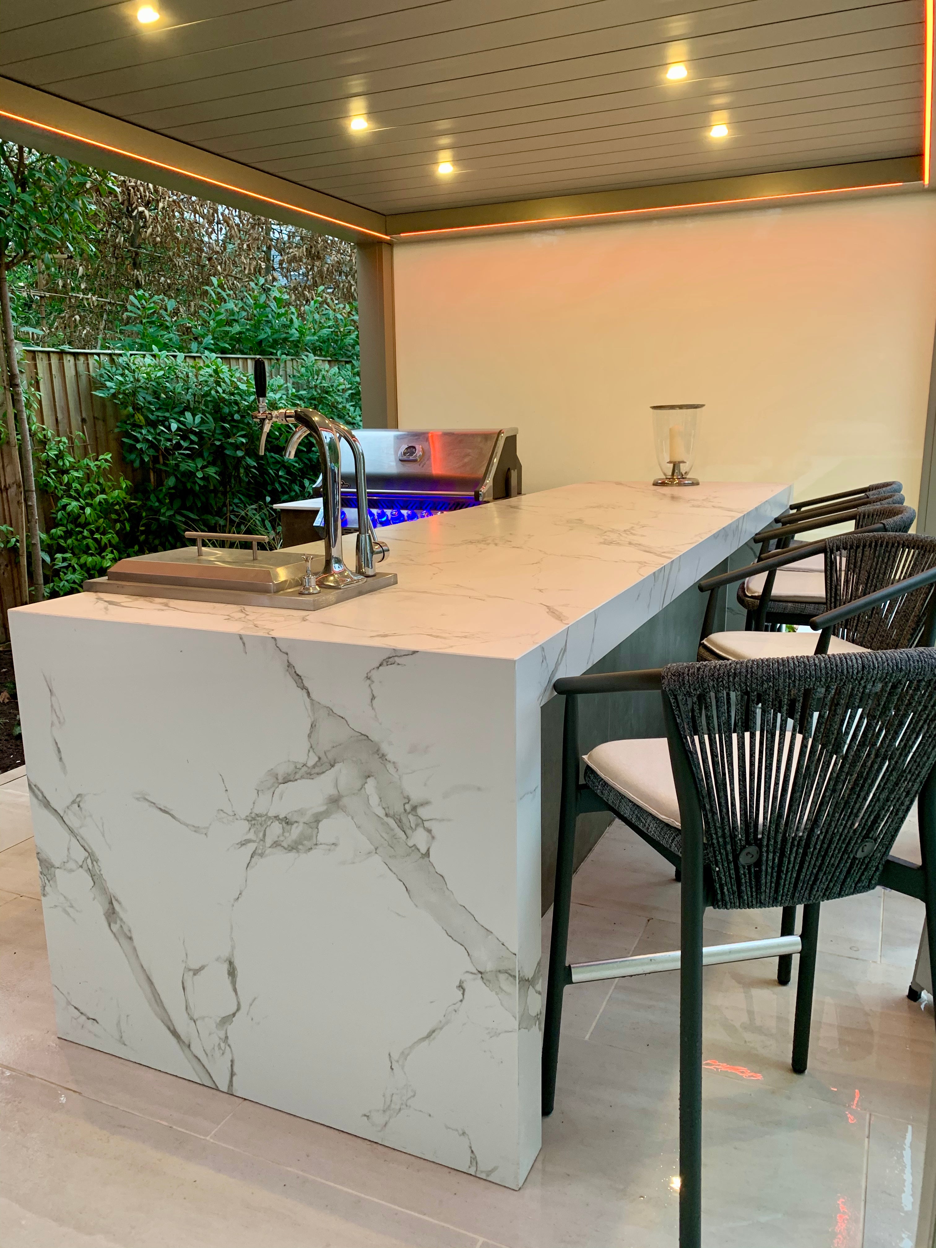 Create a truly unique outdoor kitchen. Choose materials to match the rest of your garden landscaping. Select from multiple high end brands for your in built units and BBQs