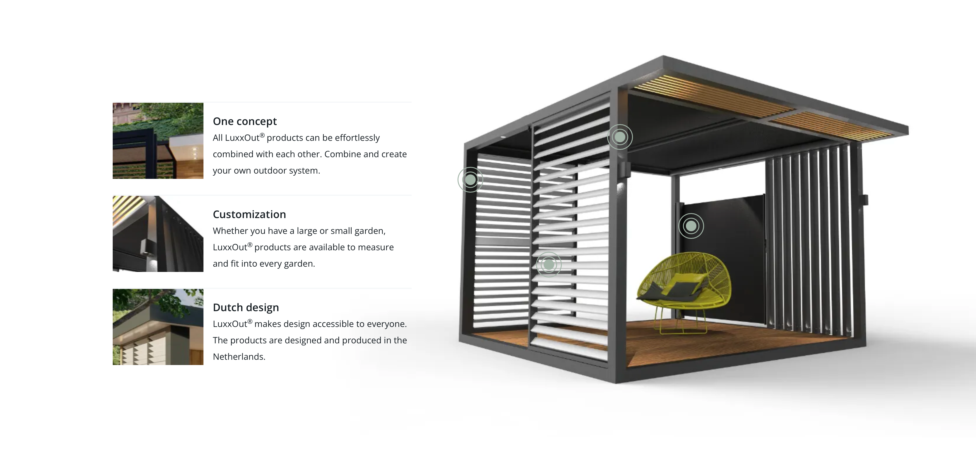 Luxxout combines the best of dutch design with innovative products to create or enhance your outdoor space.