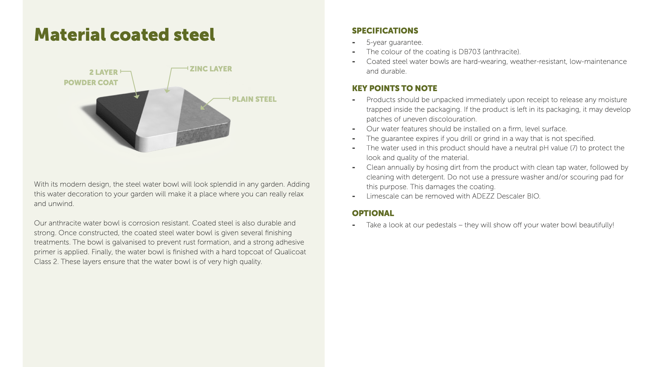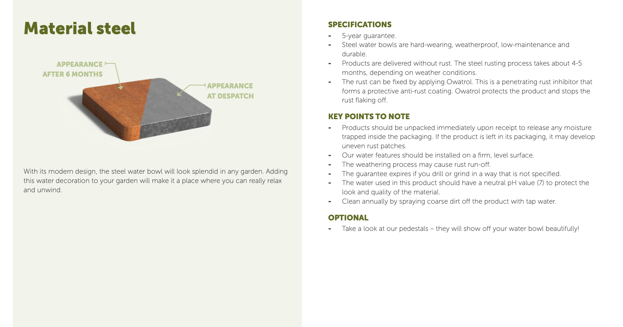 Transform your garden with our elegant steel water bowl. This low maintenance water feature adds a touch of tranquility and sophistication to any garden.