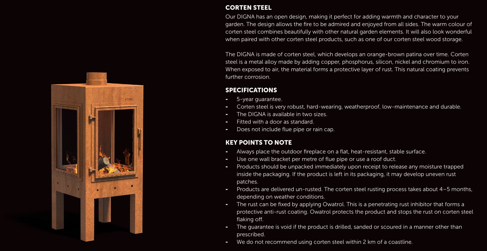 - Corten steel is very robust, hard-wearing, weatherproof, low-maintenance and durable.