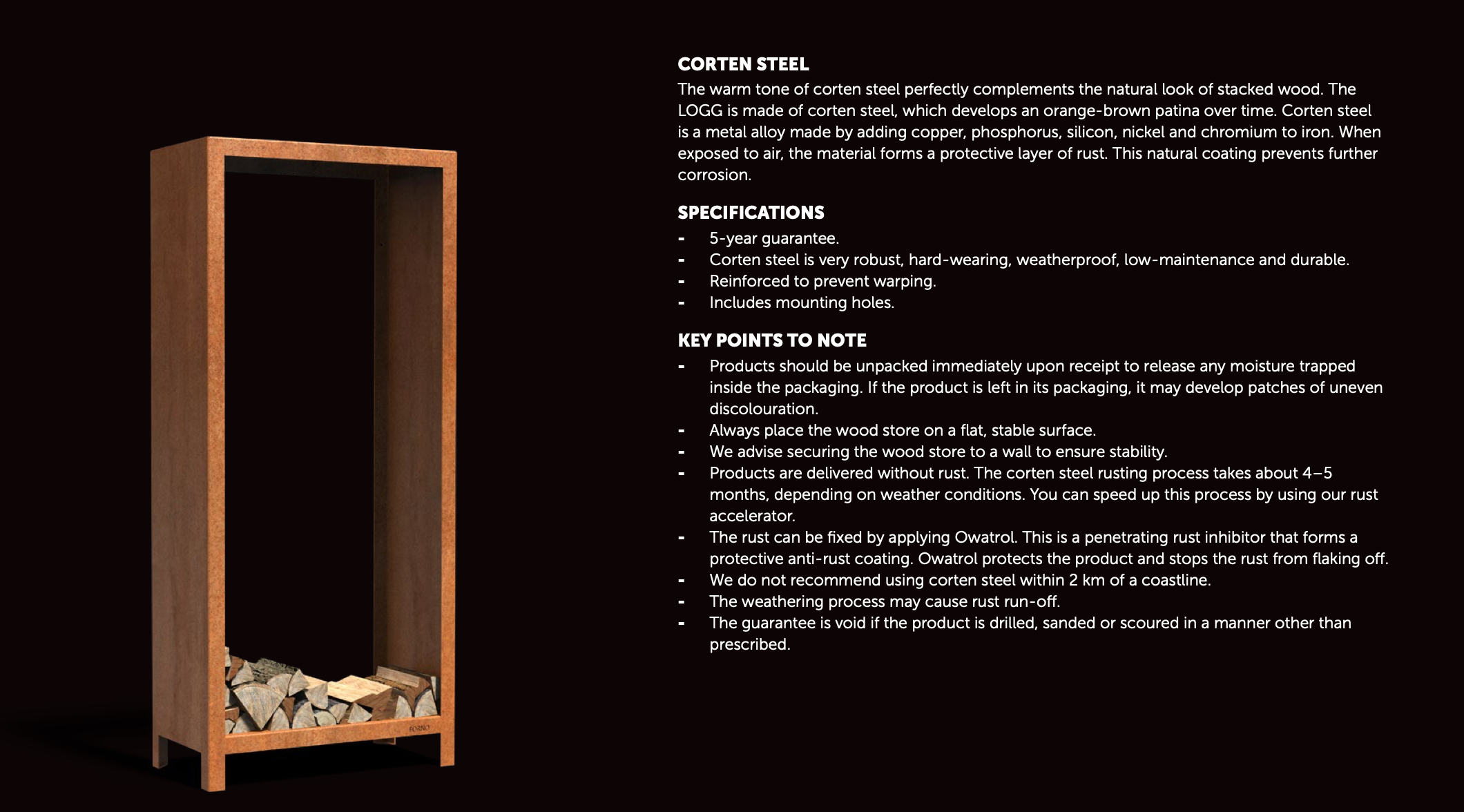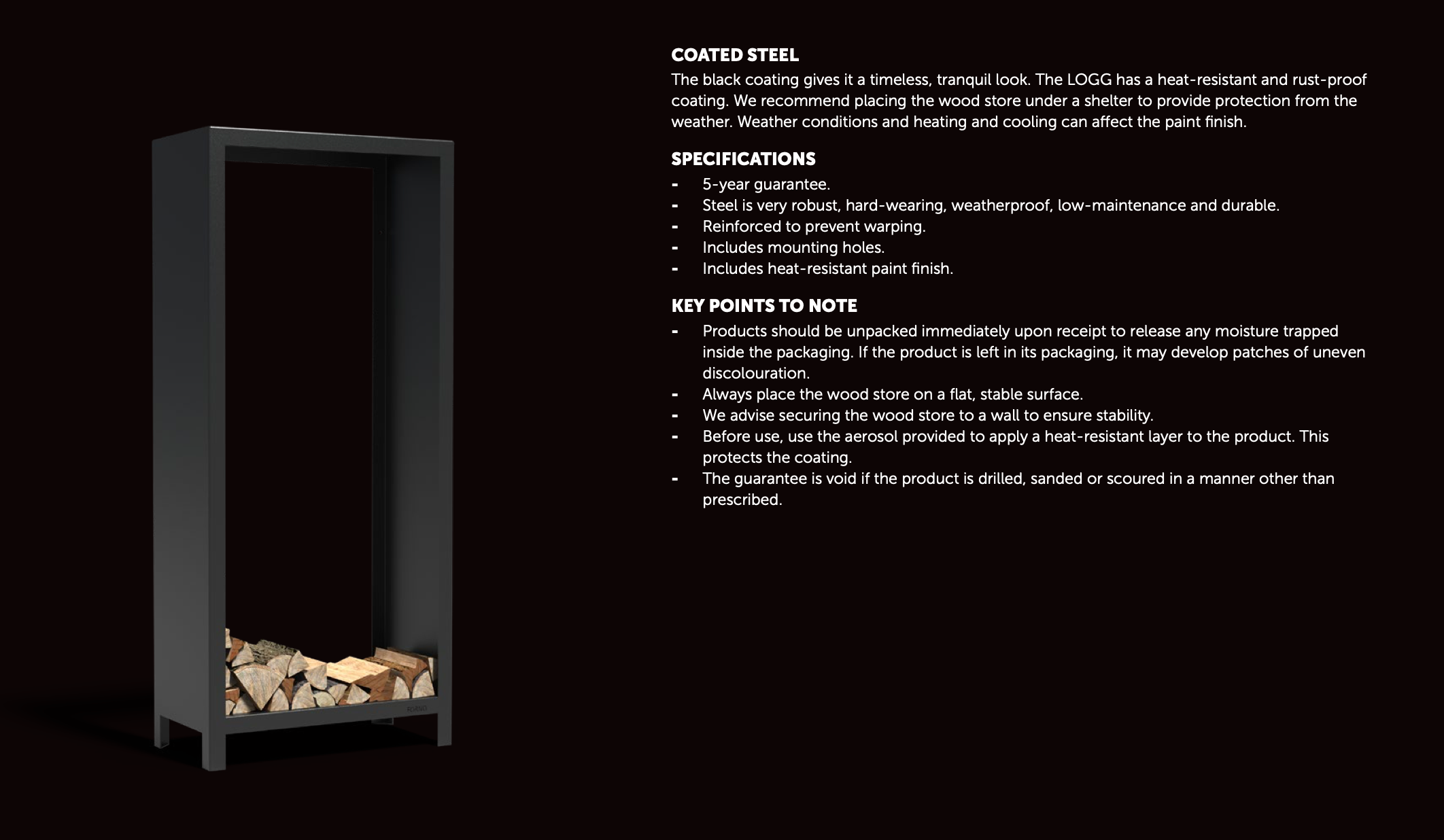 - The wood stores are made with a 3mm material thickness which makes these wood storage products very strong and heavy to load with wood.