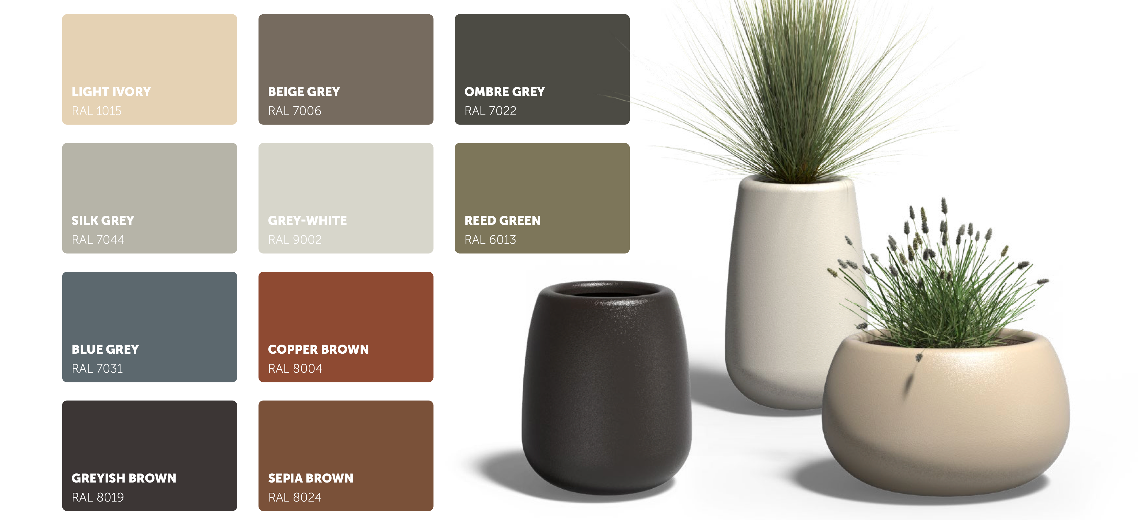 The LORA Fibreglass Outdoor Planter is available in a curated palette of beautiful earth-toned finishes, designed to blend naturally into your garden.