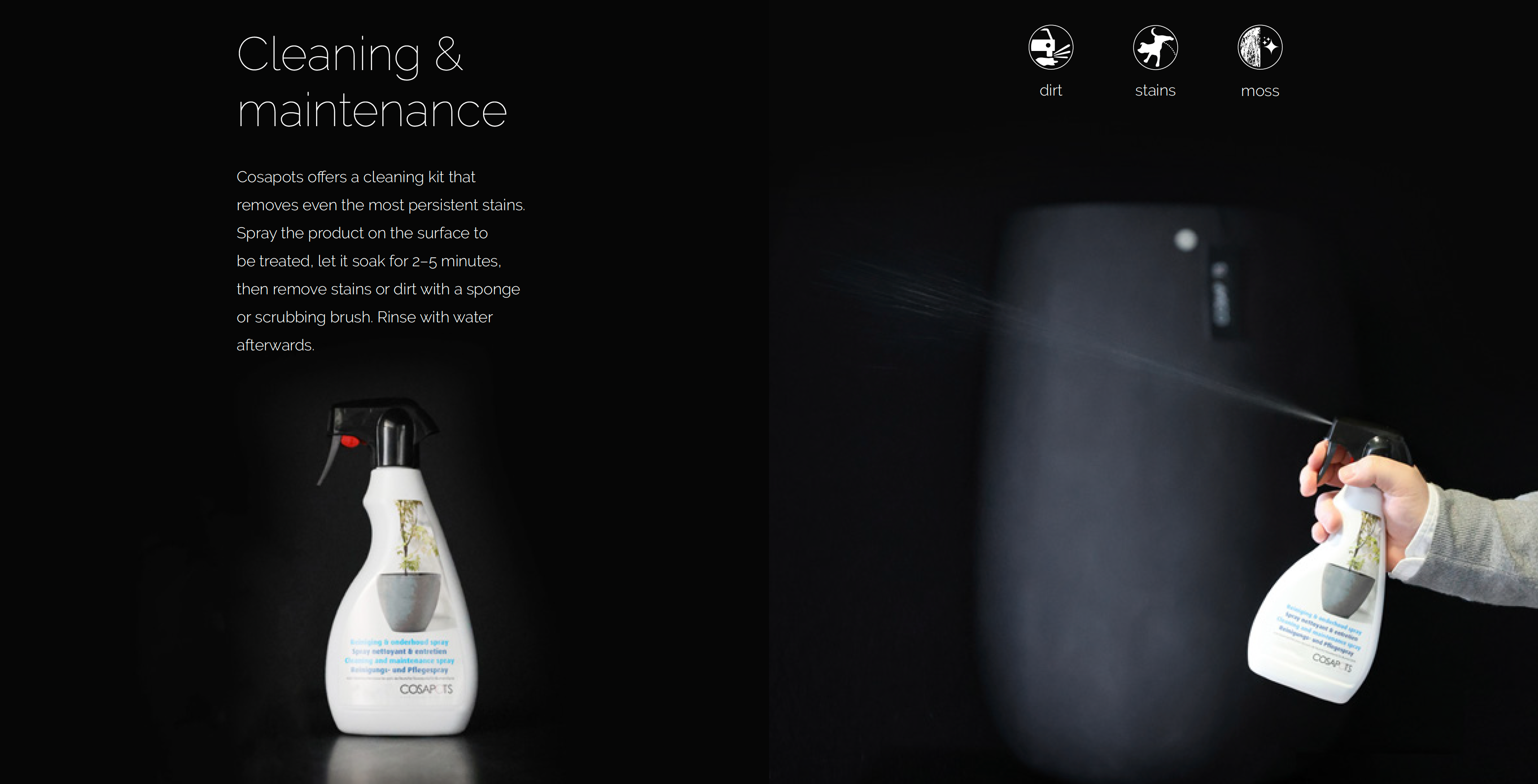 - Clean at least twice a year with our Cosapots cleaner/protector. Do not use a high-pressure cleaner or abrasive sponge, as this can damage the planter
