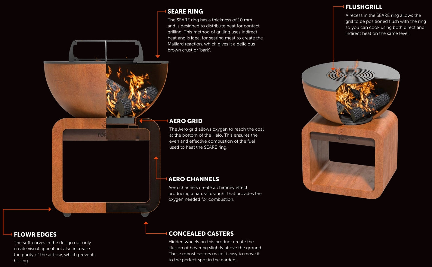 The SEARE BOLE is the perfect addition to any garden, sure to catch the eye. Spend evenings gathered around the fire with loved ones, enjoying great food and making every day feel like a holiday with the SEARE BOLE. Its unique wood-fired ring is specifically designed to evenly distribute heat across the entire surface, allowing for quick and efficient grilling.