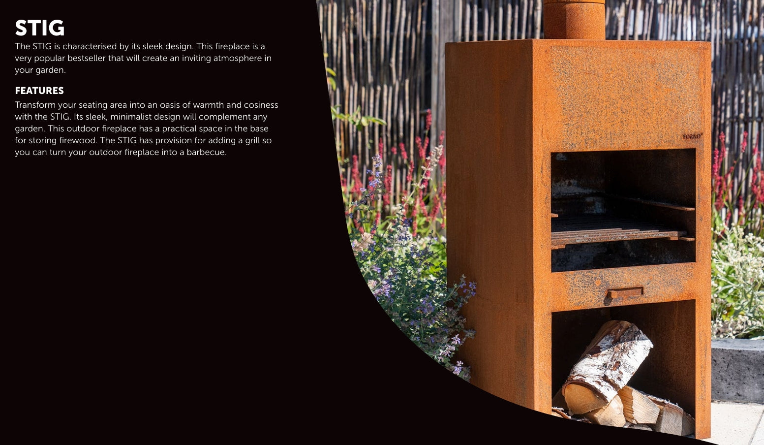 Experience the sleek design of the STIG Outdoor Fireplace. This bestseller is popular for a reason - its ability to create an inviting atmosphere in your garden is unmatched.